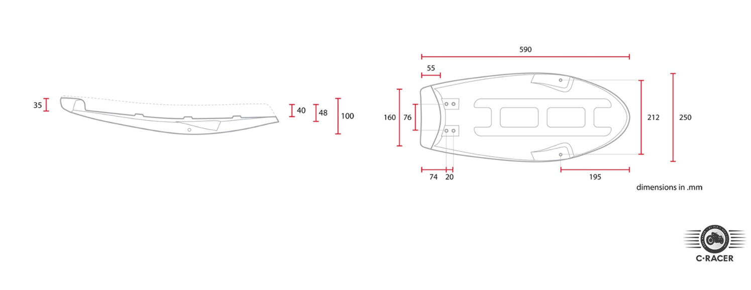 C-Racer Selle plate Café Racer / Scrambler pour Yamaha