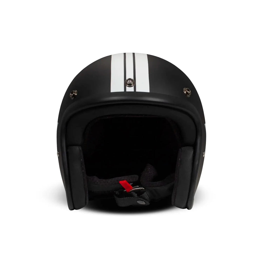 Ce qui caractérise le DMD Retro est sa construction méticuleuse et son souci du détail. Le casque homologué ECE 22.06 est disponible en trois tailles et s'adapte parfaitement aux différentes formes de tête, offrant ainsi une protection optimale. Il est compatible Bluetooth, ce qui permet une intégration transparente avec vos appareils, afin que vous puissiez rester connecté pendant vos déplacements. Les boutons-pression intégrés pour les visières ajoutent de la polyvalence, tandis que la doublure luxueuse et lavable avec des ajustements en velcro garantit un confort et une hygiène maximum. La mentonnière rembourrée et la fermeture fiable à double anneau en D offrent une sécurité supplémentaire, faisant de ce casque un mélange parfait de charme vintage et de confort contemporain.
