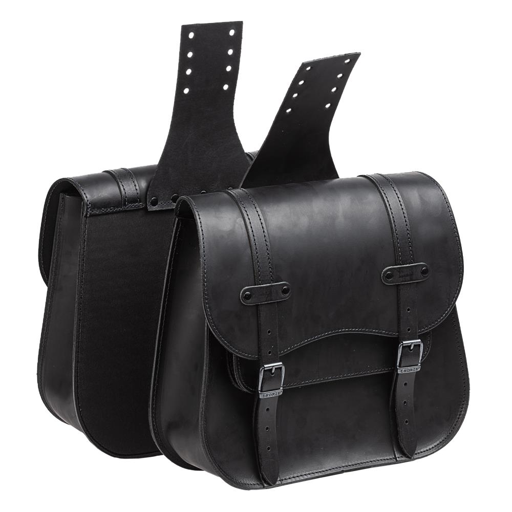 Cet ensemble de sacoches de Ledrie offre une grande capacité de rangement et un style old school qui convient à toutes les motos customisées. Fabriqué à partir de cuir véritable de première qualité d'une épaisseur de 2,8 mm, chaque sac est doté d'un panneau arrière en PEHD de 4 mm d'épaisseur cousu pour une excellente tenue de forme et une grande résistance au montage. Ces sacoches sont fabriquées à la main pour garantir une qualité constante. Elles s'adaptent à la plupart des motos.